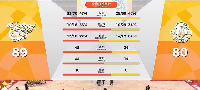 从数据来看,广东男篮打得愈加出色,投篮射中率高达47%,而青岛男篮亦然47%,可是在外线层面,广东男篮18投10中,射中率56%,而青岛队外线哑火,29投10中,射中率34%。而在篮板层面,广东男篮更是展现出压倒性优势,45-26。