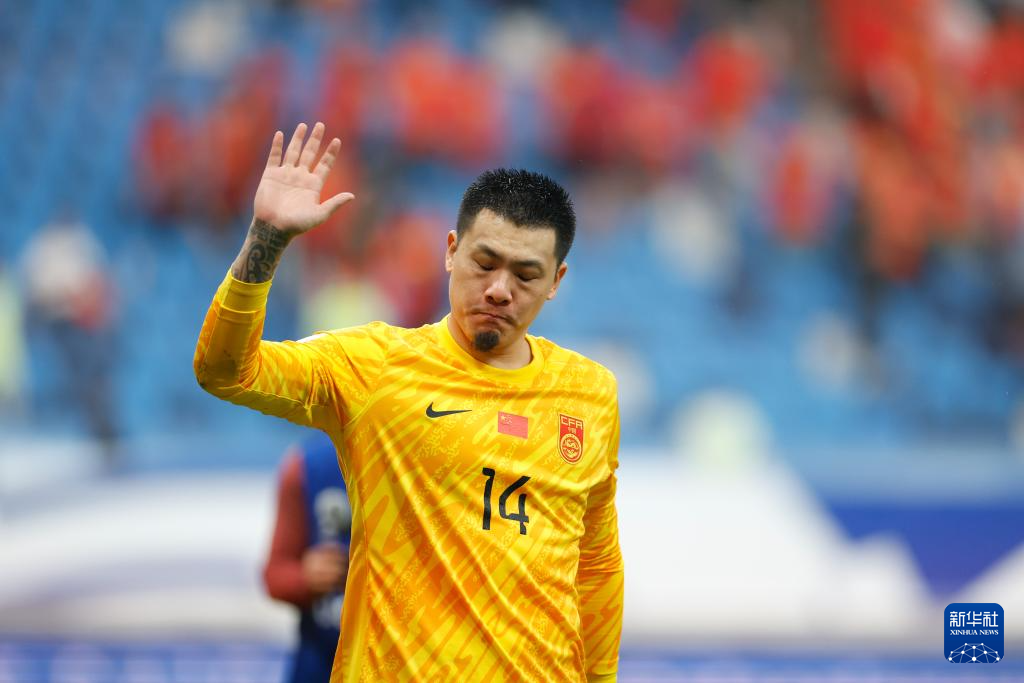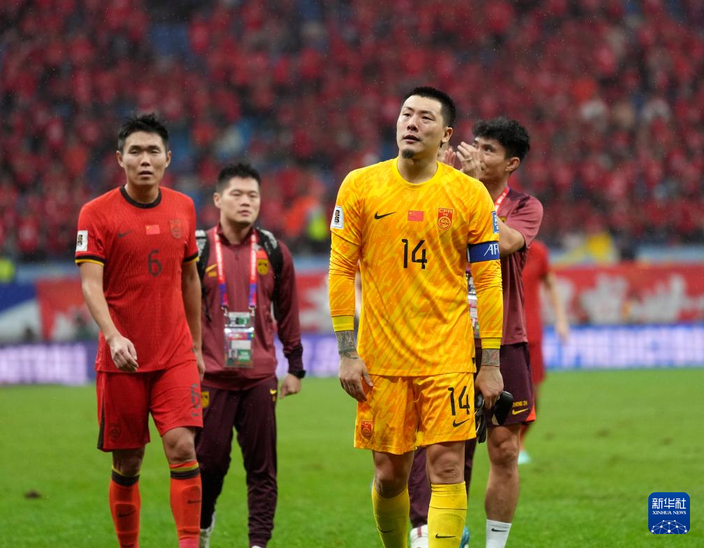 9月10日,中国队守门员王大雷(前)在比赛后。