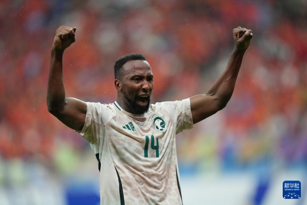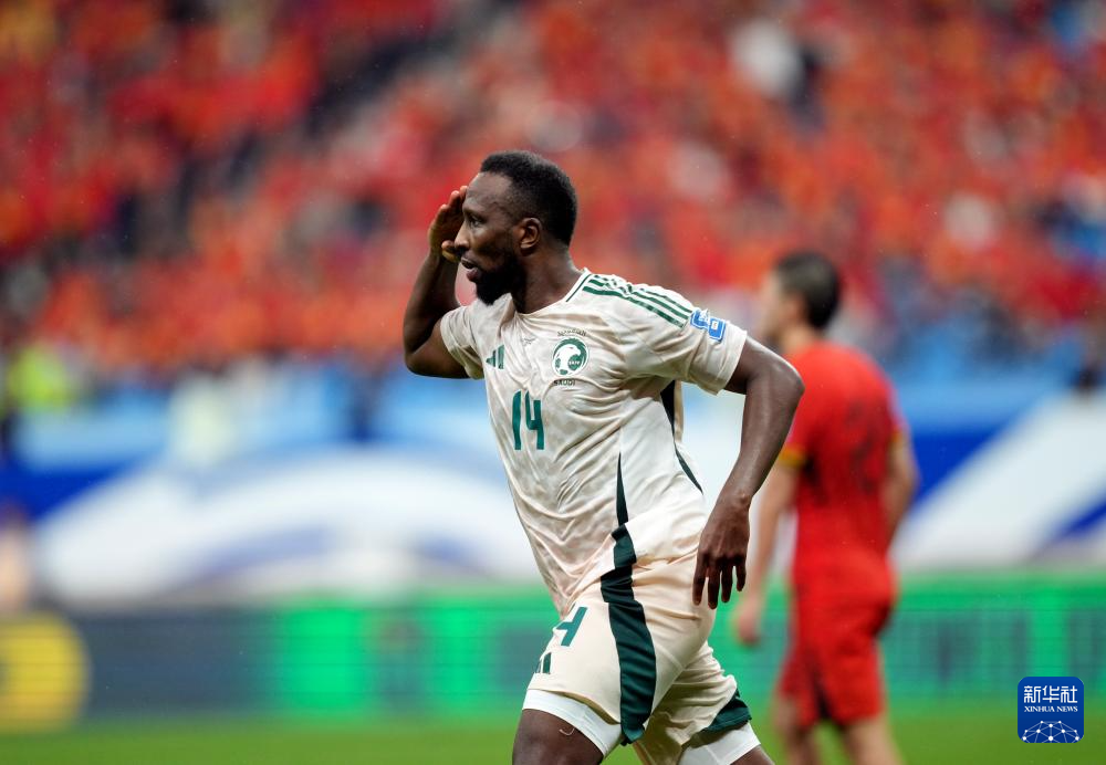 9月10日,沙特队球员卡代什庆祝进球。