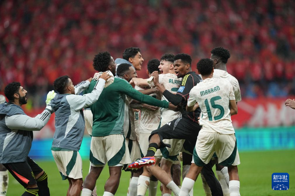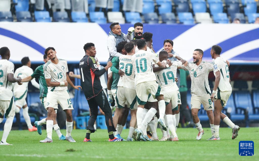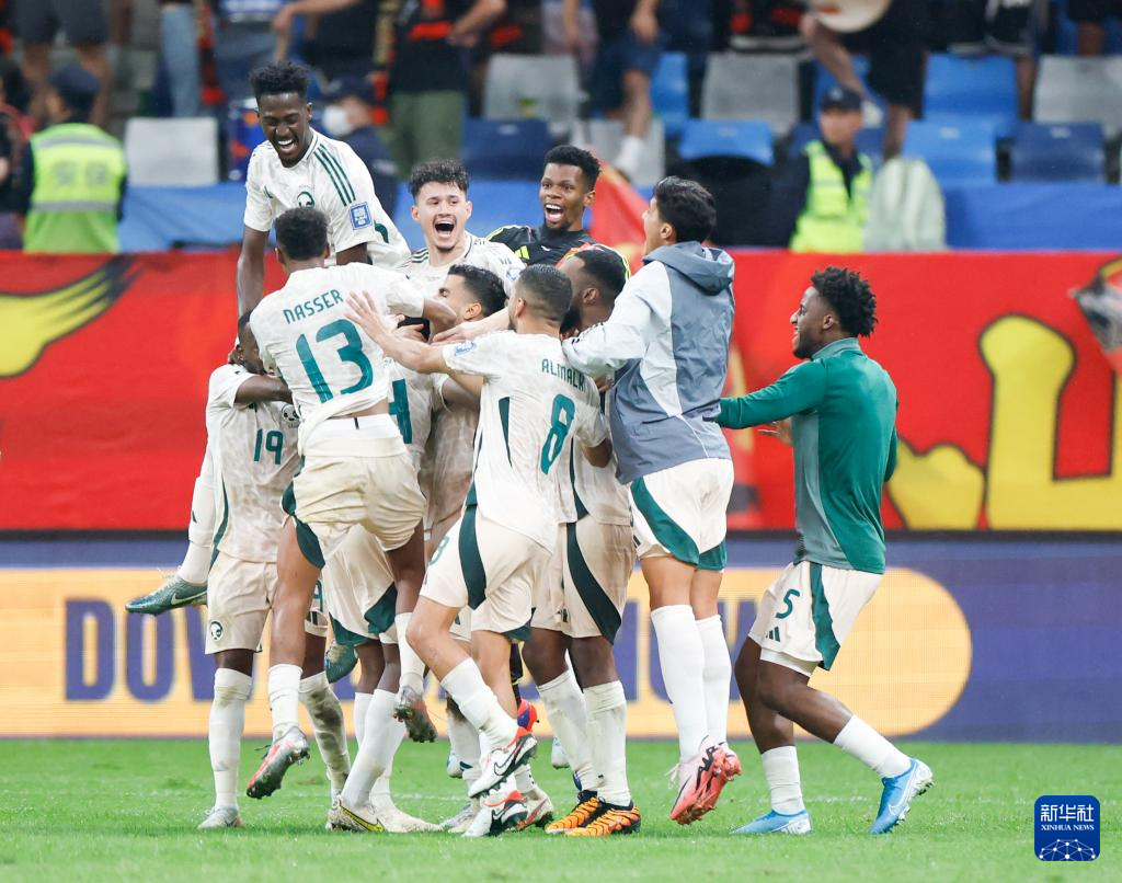 9月10日,沙特队球员在比赛中庆祝绝杀进球。