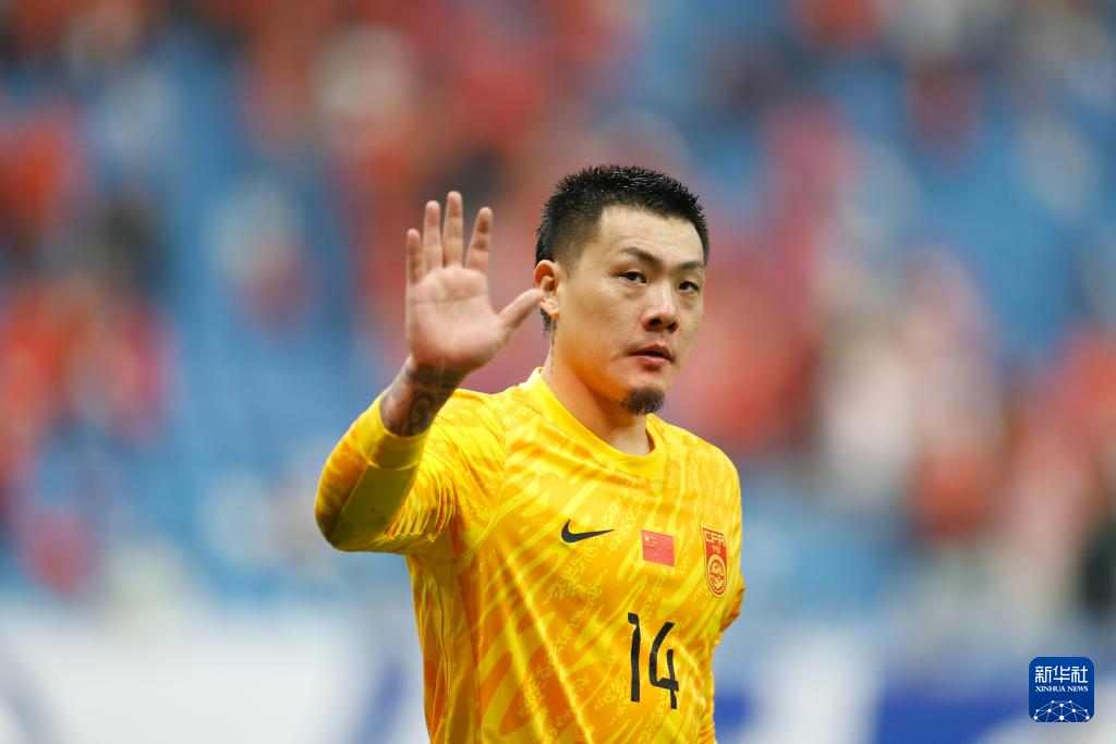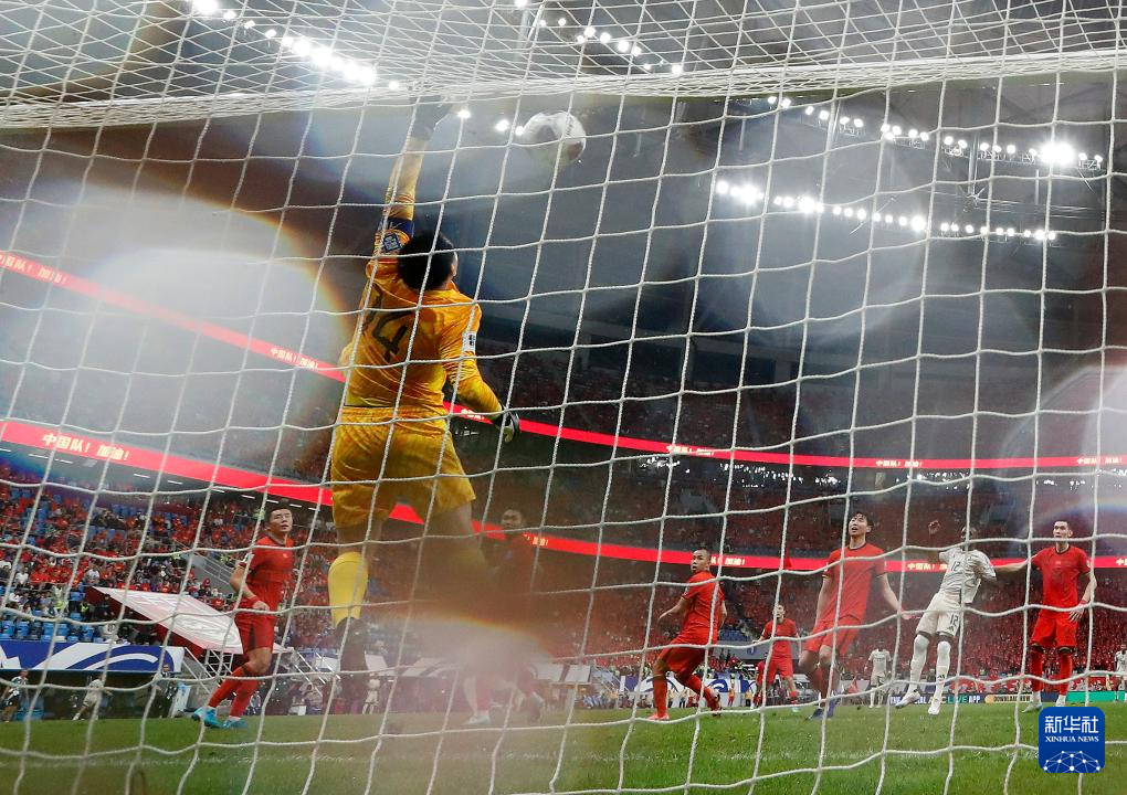 9月10日,中国队守门员王大雷在比赛中。