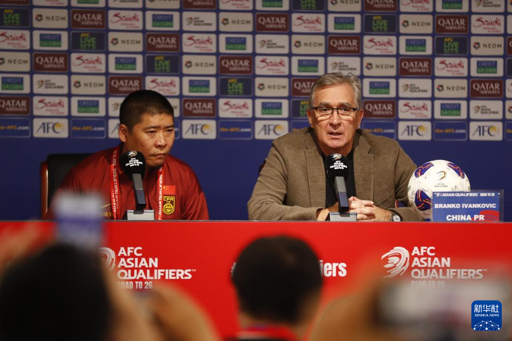 9月10日,中国队主诠释伊万科维奇(右)在赛后新闻发布会上。