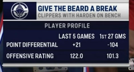 让登哥歇歇!哈登休息快船净胜分&难题恶果 近5战&前27场发达迥异