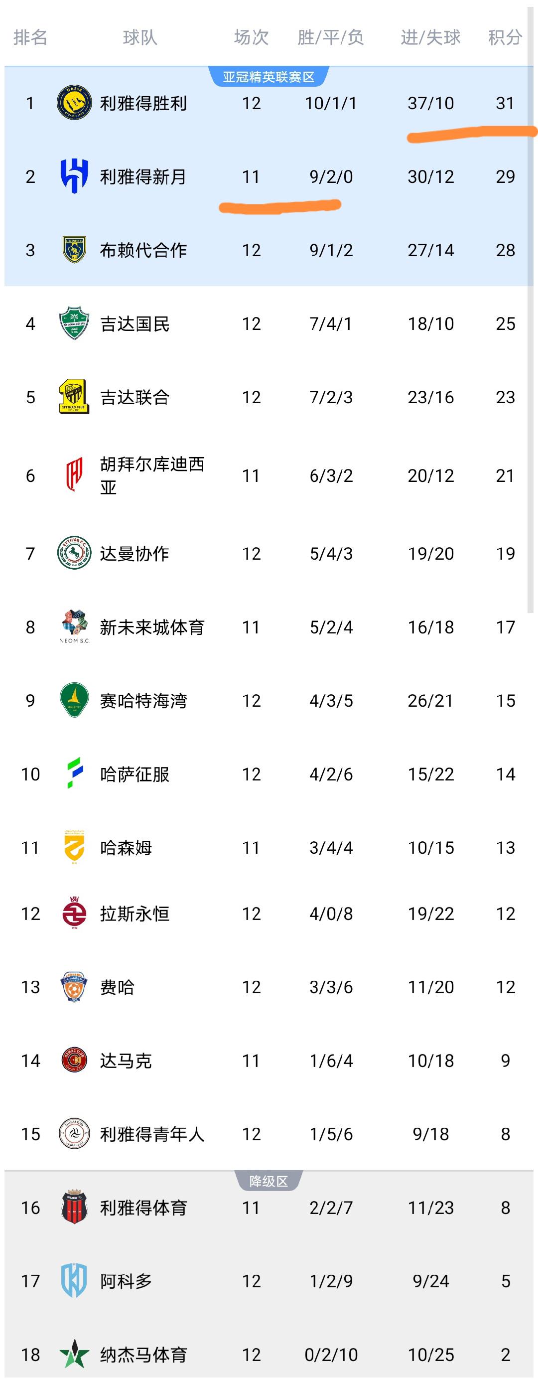 昨天凌晨于今天凌晨,沙特联第13轮远离多场较量,吉达和谐、利雅得告捷出战,咱们来望望这些比赛远离之后,沙特联最新积分榜情况。