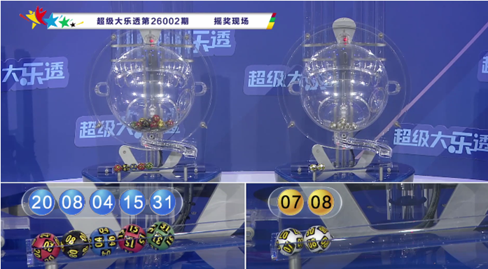 上期开奖:大乐透第2026002期开奖号码为:04、08、15、20、31+07、08。