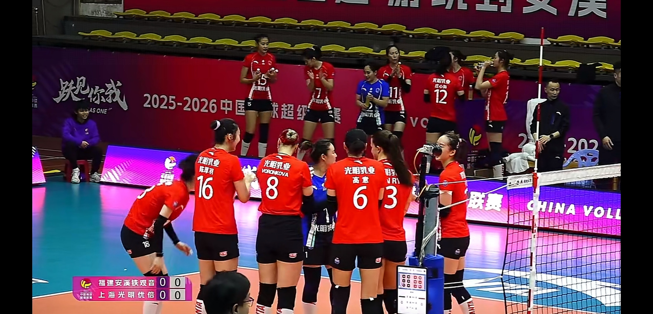 福建女排第一场比赛不敌上海女排,本场比赛福建女排全华班出战,福建女排主场作战。诚然福建女排失去了中枢主攻庄宇珊,然而福建女排欲借助主场上风拿下比赛。