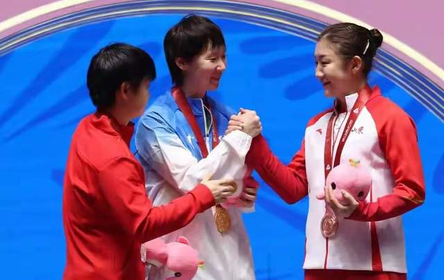 第十五届乒乓球女单名目落下了帷幕,4比2打败孙颖莎,称愿卫冕。在这场号称至人打架一般的巅峰对决中,两东谈主屡次拉锯,打得迥殊惨烈。而在重荷打败孙颖莎之后,王曼昱忍不住仰天吼怒。孙颖莎邻接2届全运会王人输给了统一个敌手,难掩落寞之情。而宿将陈梦呢,拿个铜牌,得意写在了脸上。而在赛后的受奖庆典上,有谁精通到这暖心一幕呢?